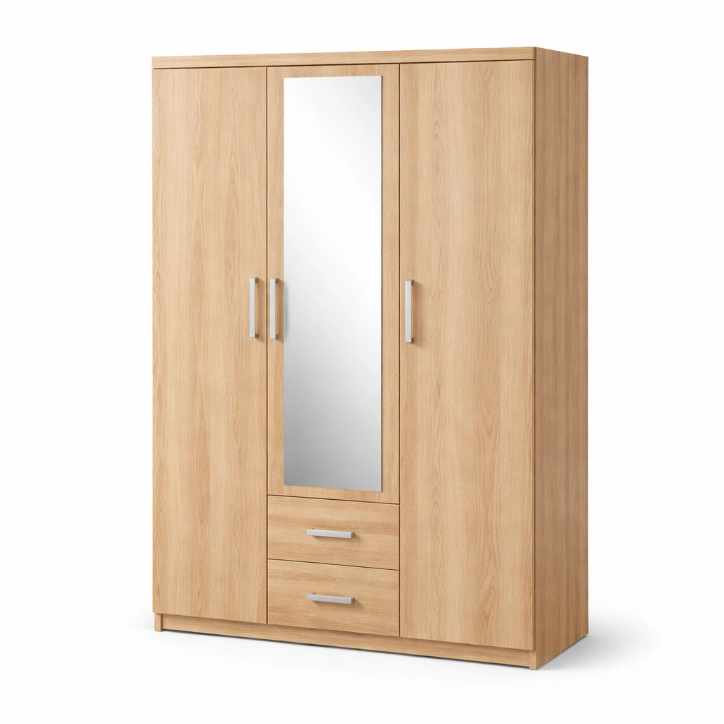 Kleiderschrank aus holz eicheoptik mit spiegel und schubladen 120x52x191cm